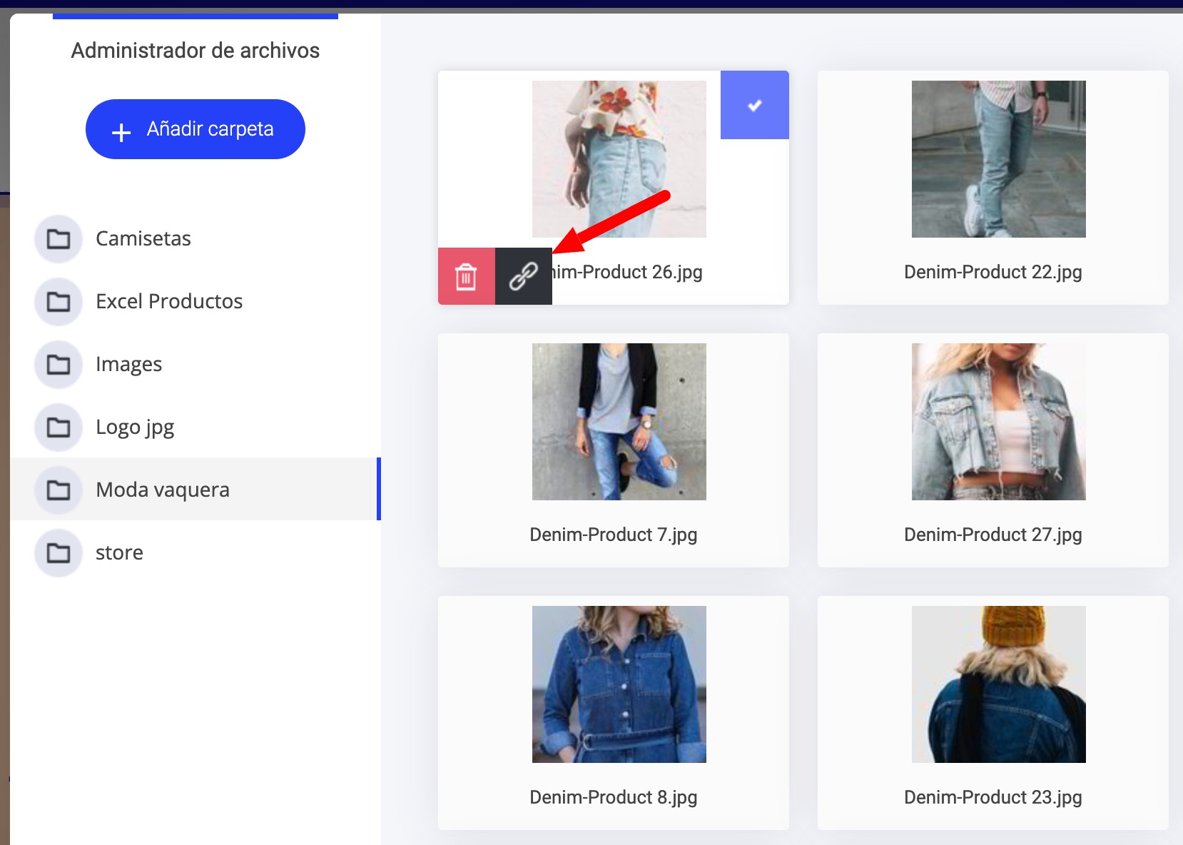 2. Ver todos los archivos: Es la mejor opción cuando quieres mantener el tamaño y la calidad originales. Aquí también puedes subir archivos como pdf, audio o vídeos que quieras vender como productos digitales o enlazarlos para que se descarguen al pulsar un botón. El enlace de descarga solo lo encontrarás en Ver todos los archivos.