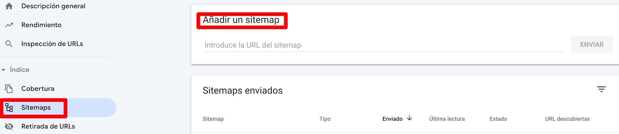 Para indicarle a Google dónde se encuentra nuestro sitemap deberemos ir a la herramienta de Google Search Console y simplemente introducir la URL terminada en /sitemap.xml