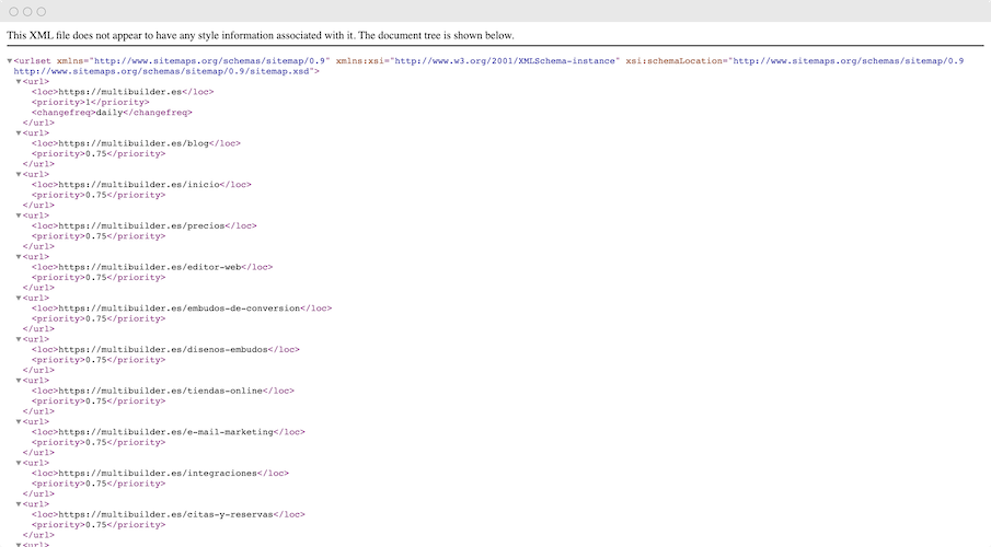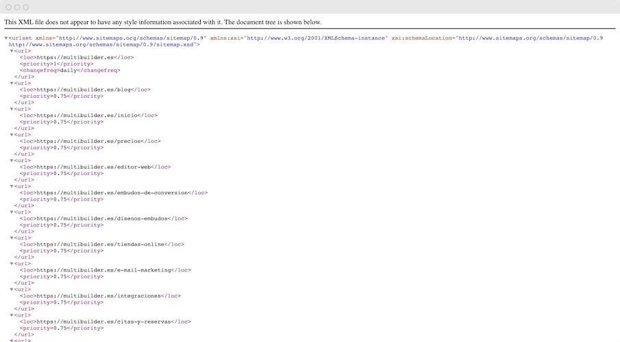 En Multi Builder tenemos varios tipos de mapas del sitio: