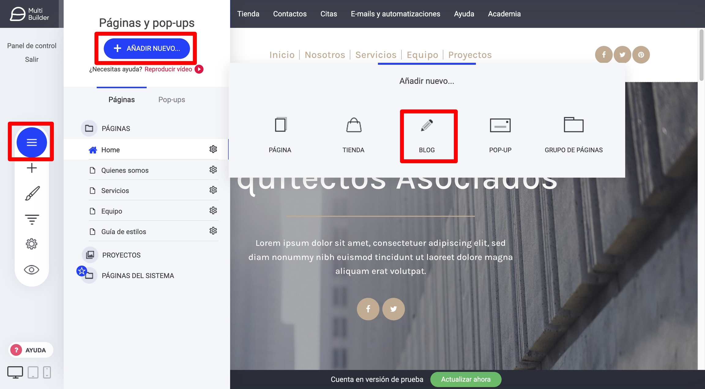 Los blogs solo se pueden crear dentro de los sitios web (no en los embudos). Si todavía no tenemos blog, crearemos uno yendo a Páginas>Añadir nuevo.