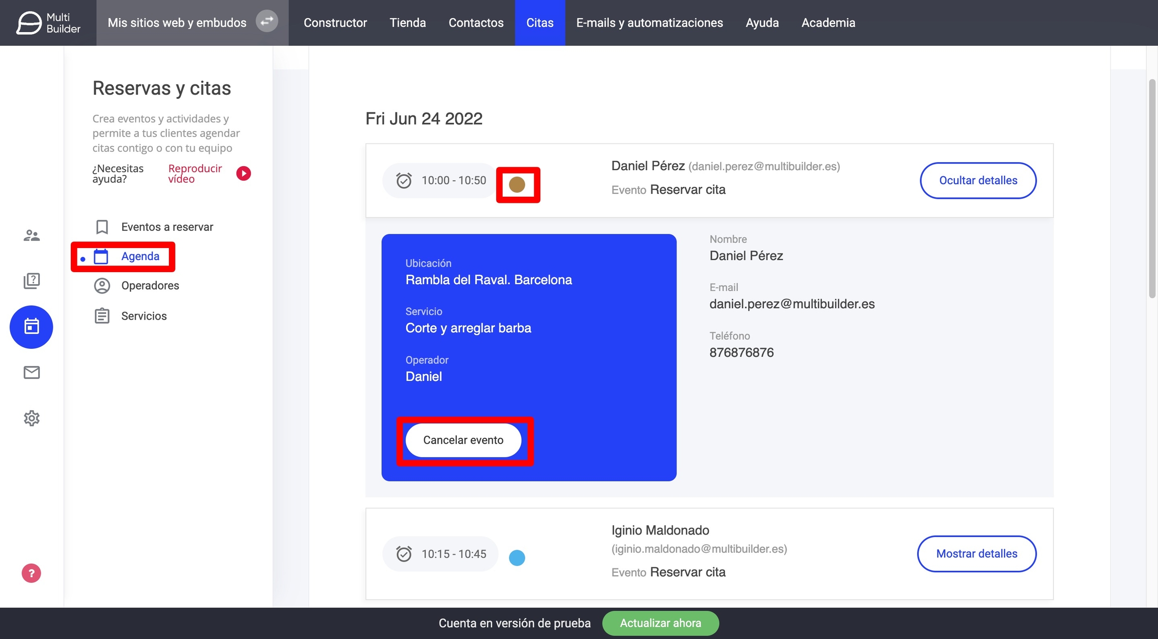 Desde la sección de Agenda podrás gestionar todas las citas programadas: