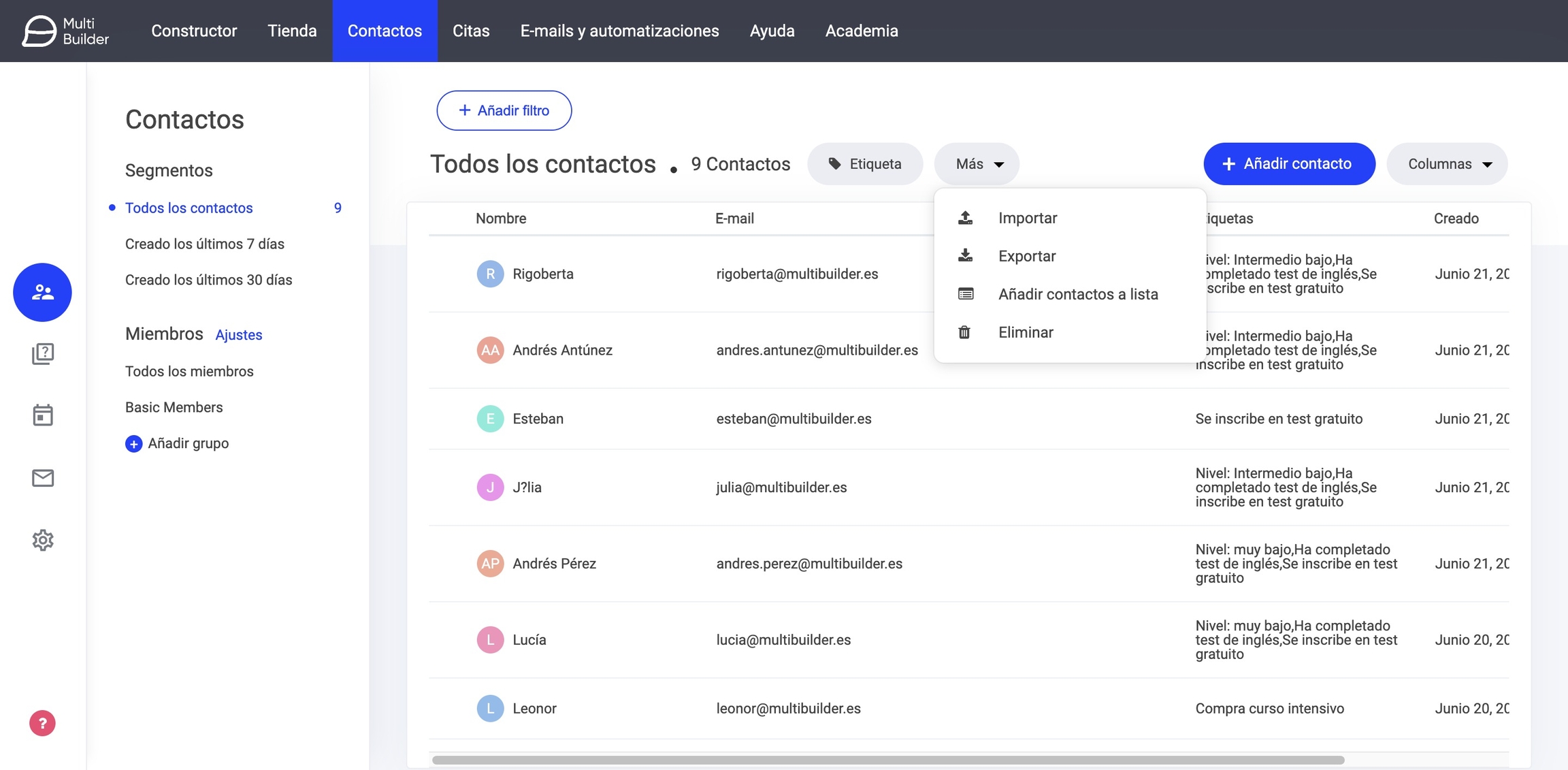 Añadir etiquetas de una vez a todos o a una parte de los contactos.