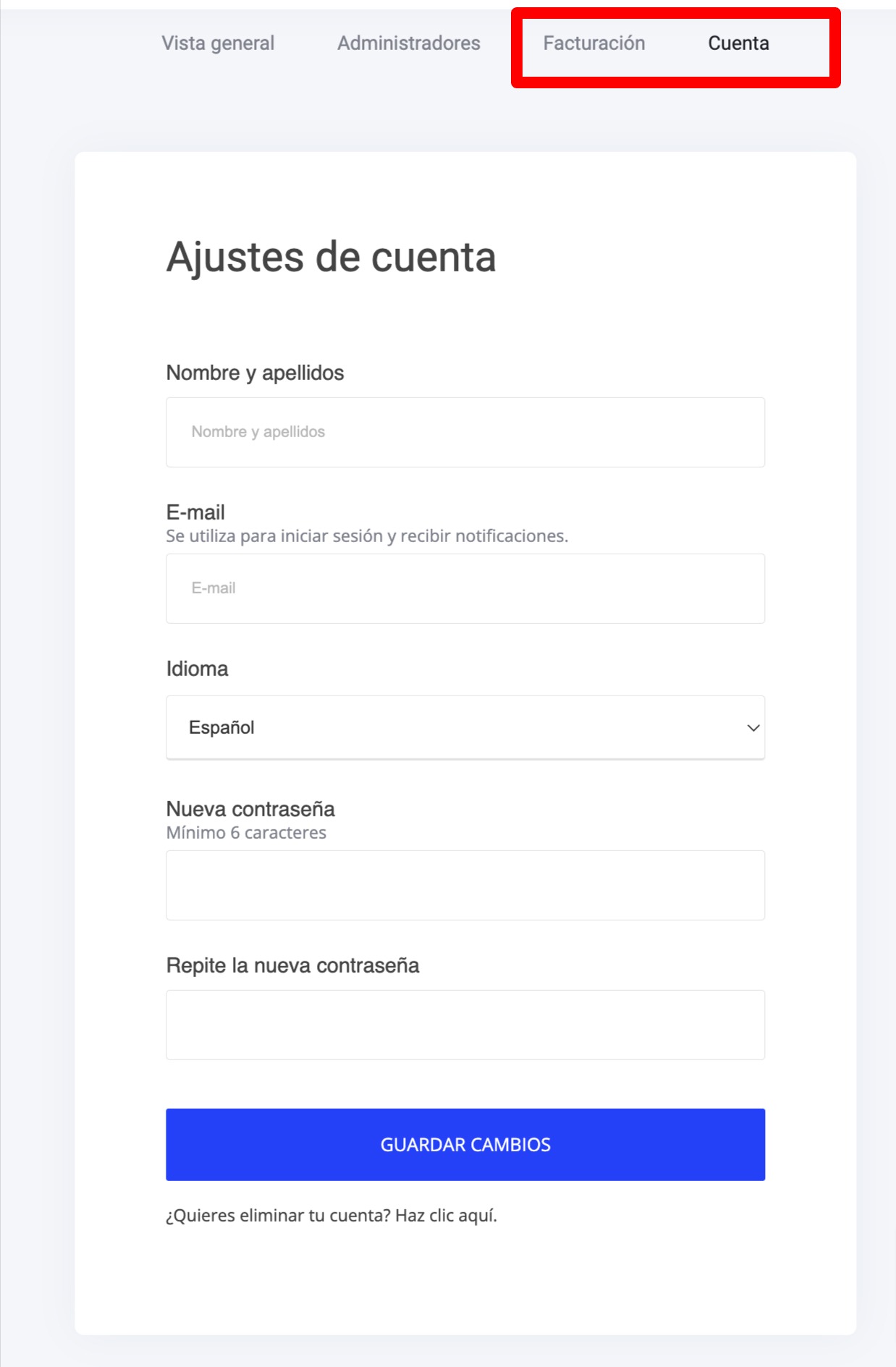 Por último, desde Facturación y Cuenta podrás modificar el nombre, e-mail y contraseña de tu cuenta y ver todas las facturas de tu suscripción a Multi Builder. También desde aquí verás los créditos que tienes para el envío de e-mails desde campañas de e-mail marketing.