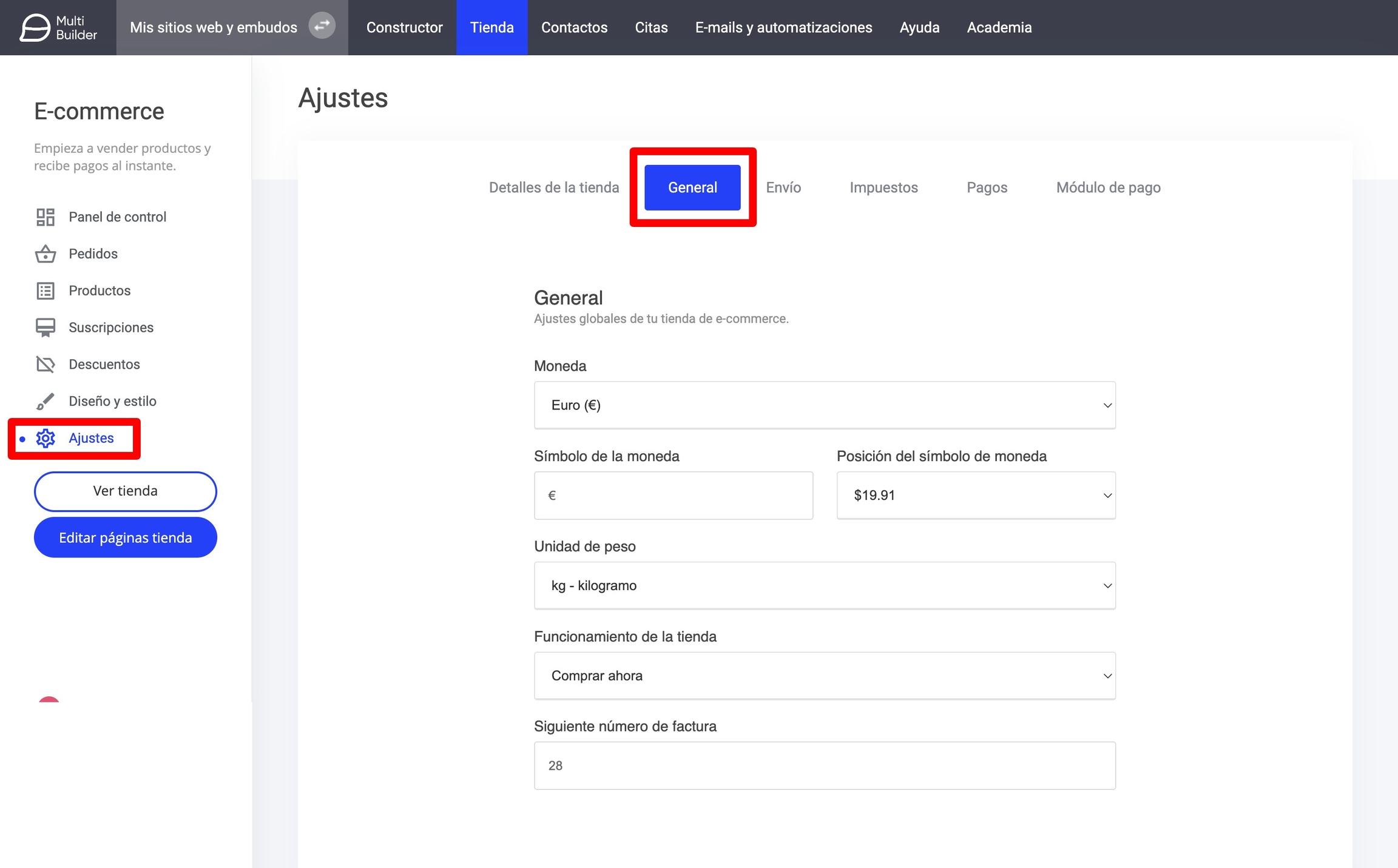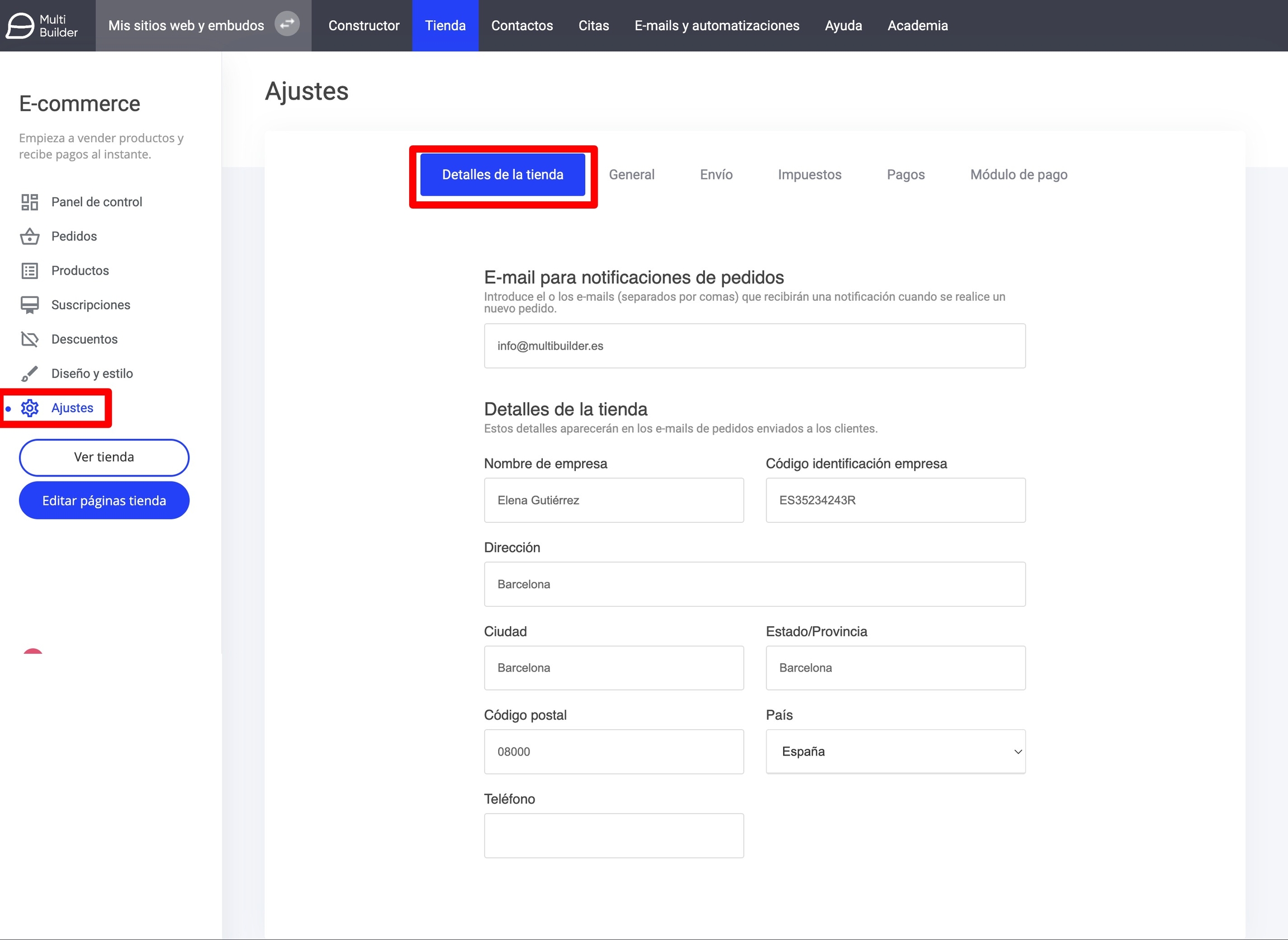 Ajustes de tu tienda