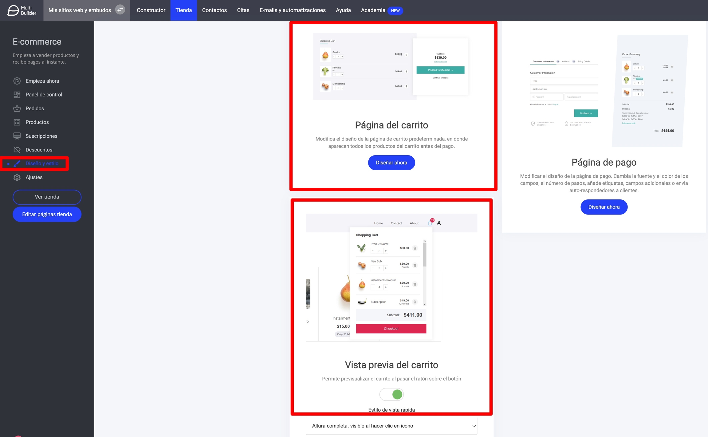 Vista previa del carrito