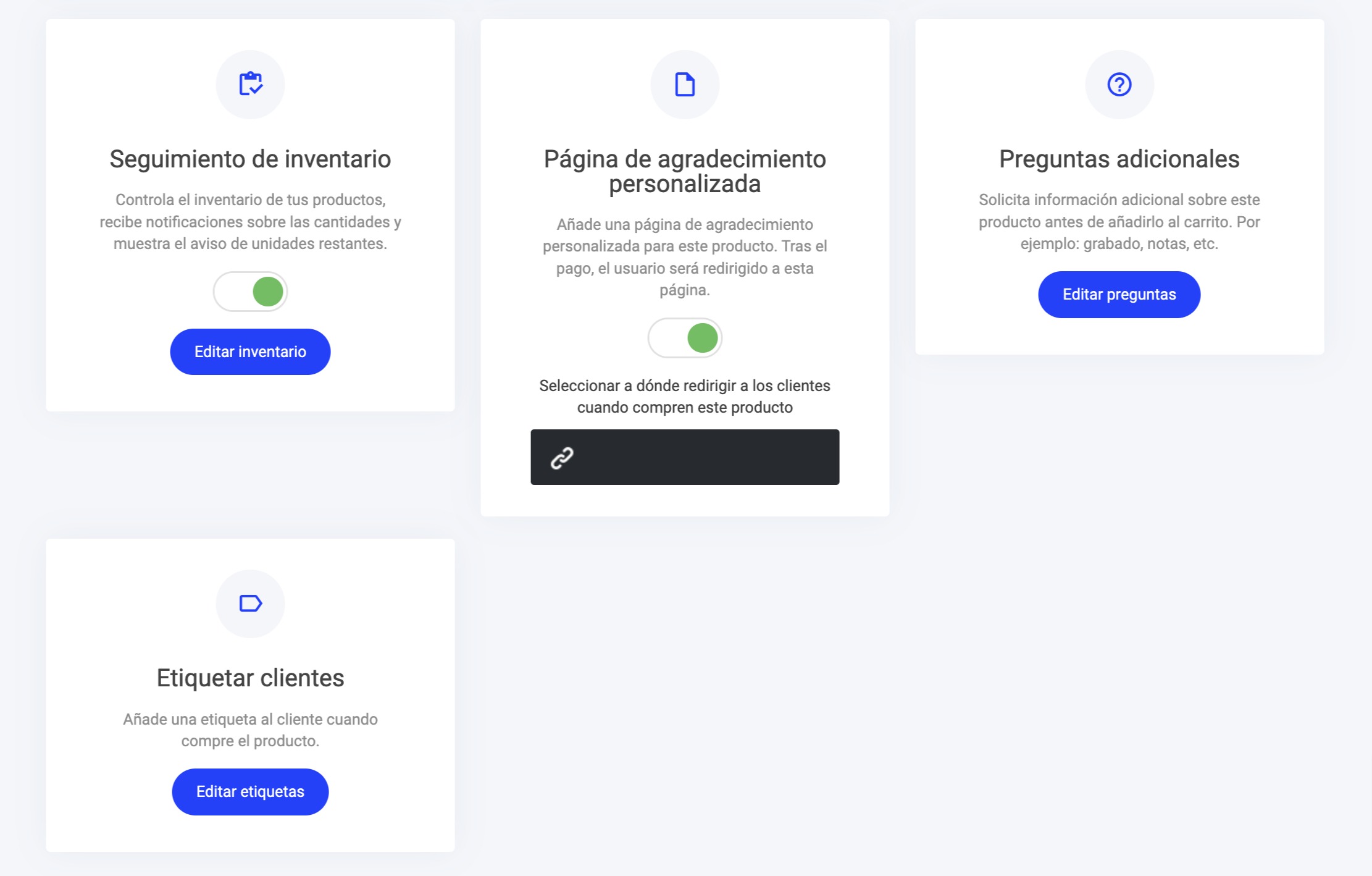 Página de agradecimiento personalizada: cuando un usuario compra un determinado producto, al finalizar el proceso de compra lo podemos redirigir a una página de nuestra web o una página externa.