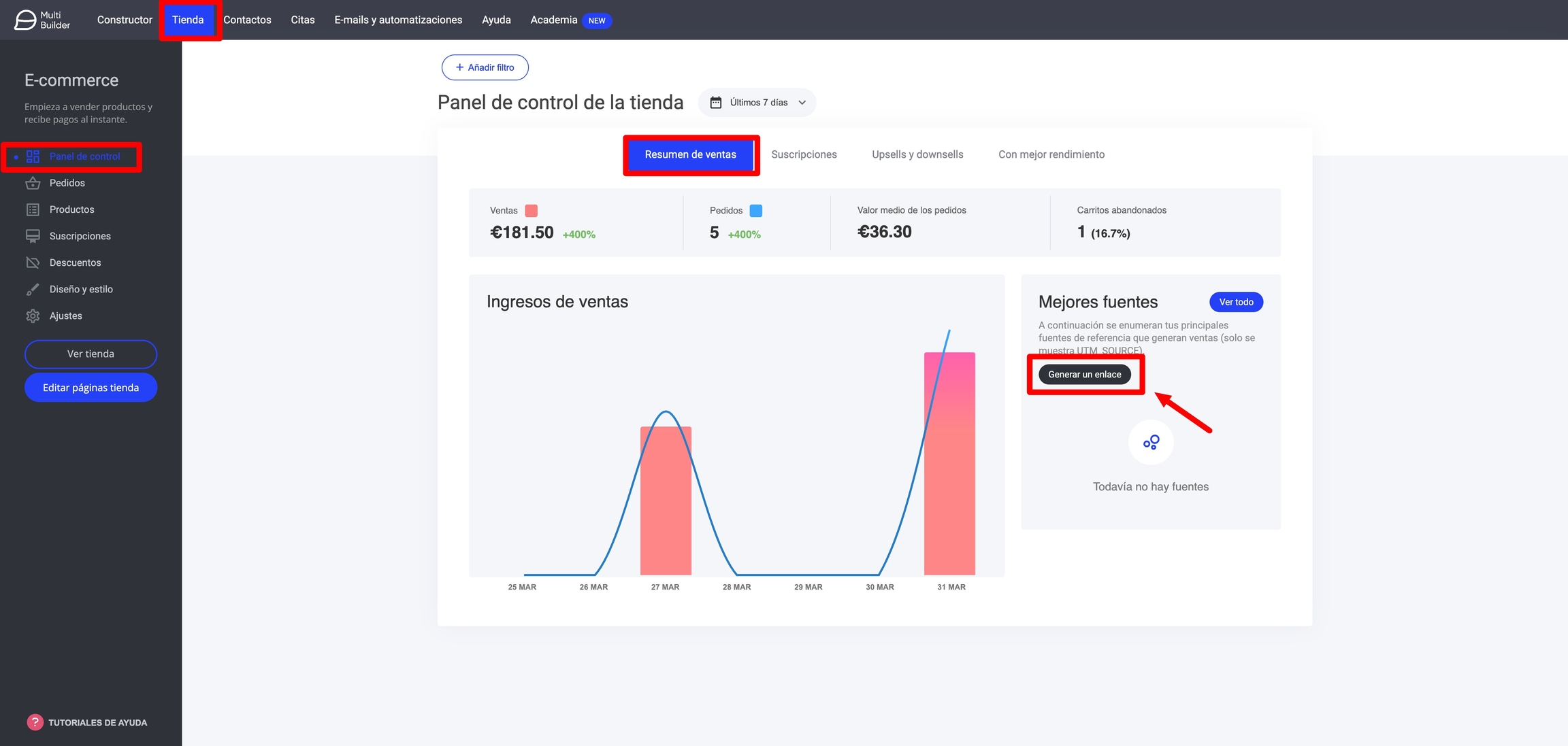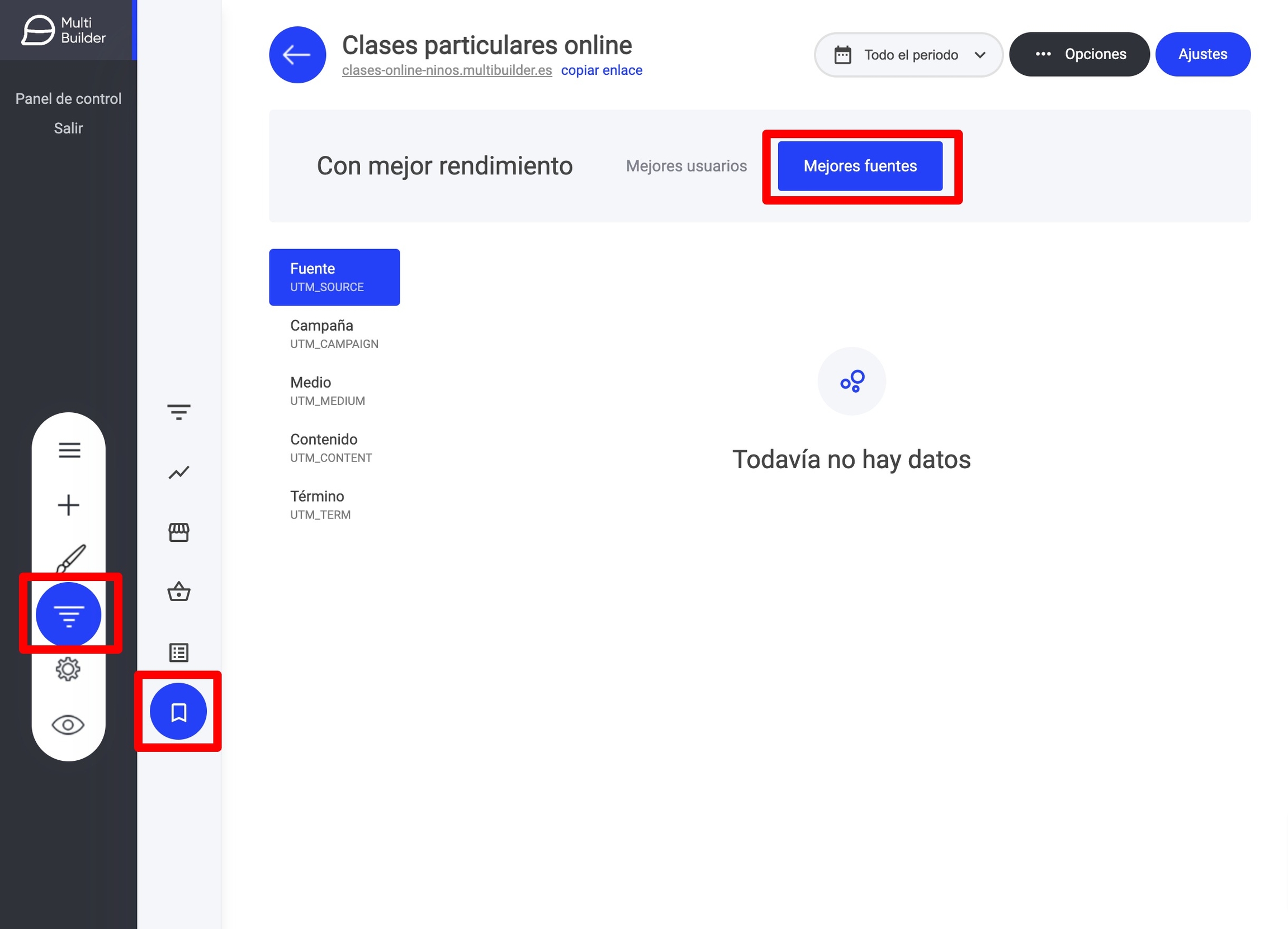 Pero en Multi Builder hemos incluido un generador de estos enlaces y todas las estadísticas las puedes consultar sin salir del sistema.