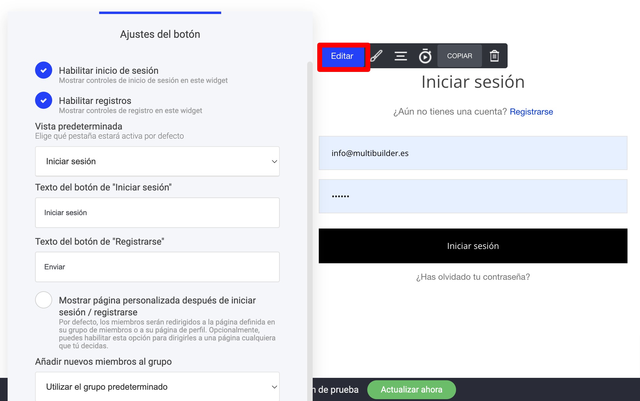 ¿Para qué sirve este widget de registro e inicio de sesión?