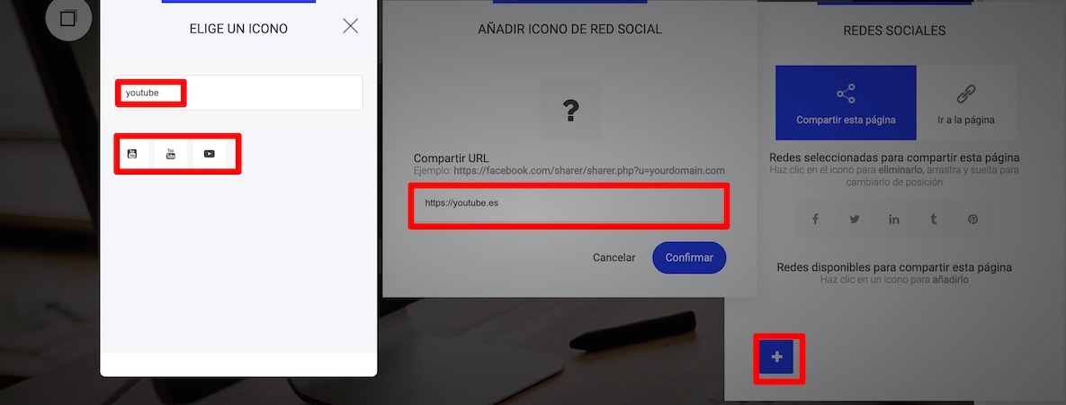 Compartir en una red social la página en la que se encuentre el icono